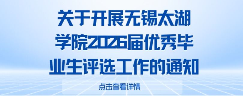 各学院:根据《无锡太湖学院学生表彰奖励办法》的相关要求,为树立典型,表彰德智体美劳全面发展且表现突出的毕业生,充分发挥先进典型示范引领作用,决定在本校全日制应届毕业生中开展2026届优秀毕业生评选工作,现将有关事项通知如下:一、评选对象我校2026届全日制本科毕业生二、评选比例优秀毕业生人数不超过毕业生总人数的3%三、评选时间2026年3月25日—4月10日四、评选条件1、热爱社会主义祖国,拥护党的路线方针政策,能模范地遵守校纪校规,...